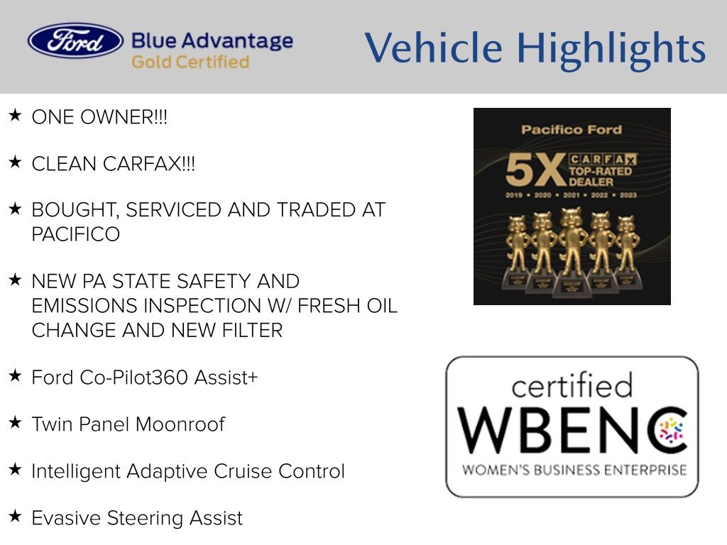 The standout features of this Explorer XLT include the Ford Co-Pilot360 Assist+ suite, which boasts Intelligent Adaptive Cruise Control, Evasive Steering Assist, and Speed Sign Recognition. The voice-activated touchscreen navigation system and twin-panel moonroof further enhance the driving experience, providing both convenience and a touch of luxury.