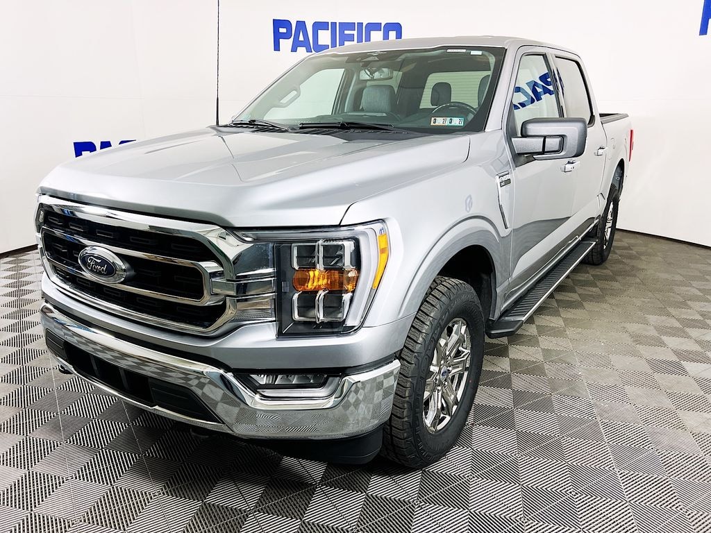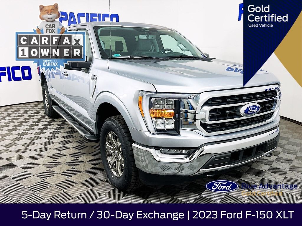 This pre-owned 2023 Ford F-150 XLT 4x4 SuperCrew delivers EcoBoost power, chrome appearance styling, and advanced towing technology in stunning Iconic Silver Metallic with Dark Slate Cloth Interior.