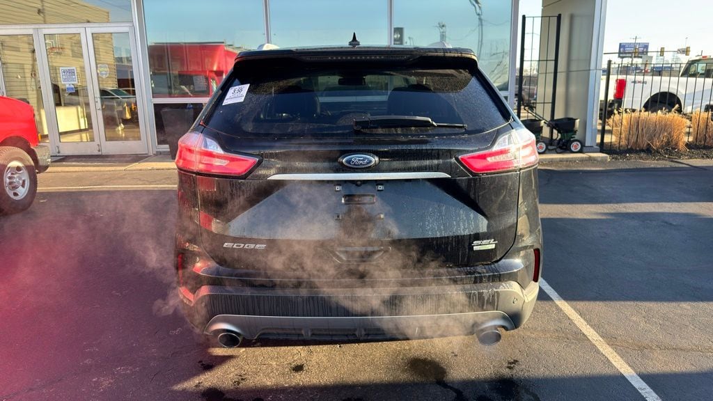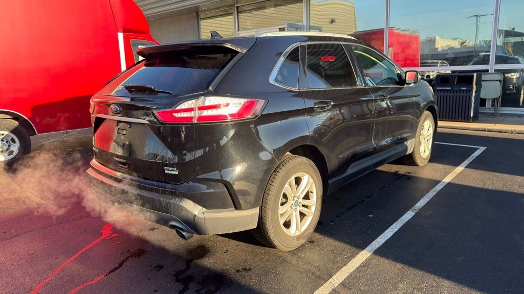 This pre-owned 2019 Ford Edge SEL delivers turbocharged performance, premium comfort, and advanced safety technology in sleek Agate Black Metallic with Ebony ActiveX⢠seating.