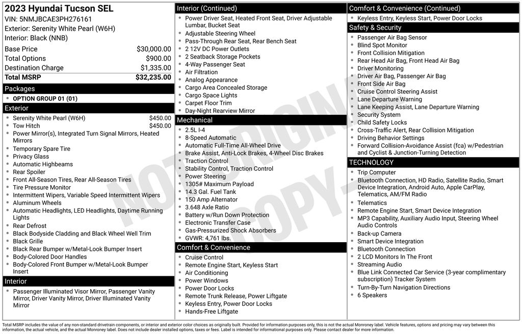 - Tracker system: Blue Link Connected Car Service (3-year complimentary subscription)