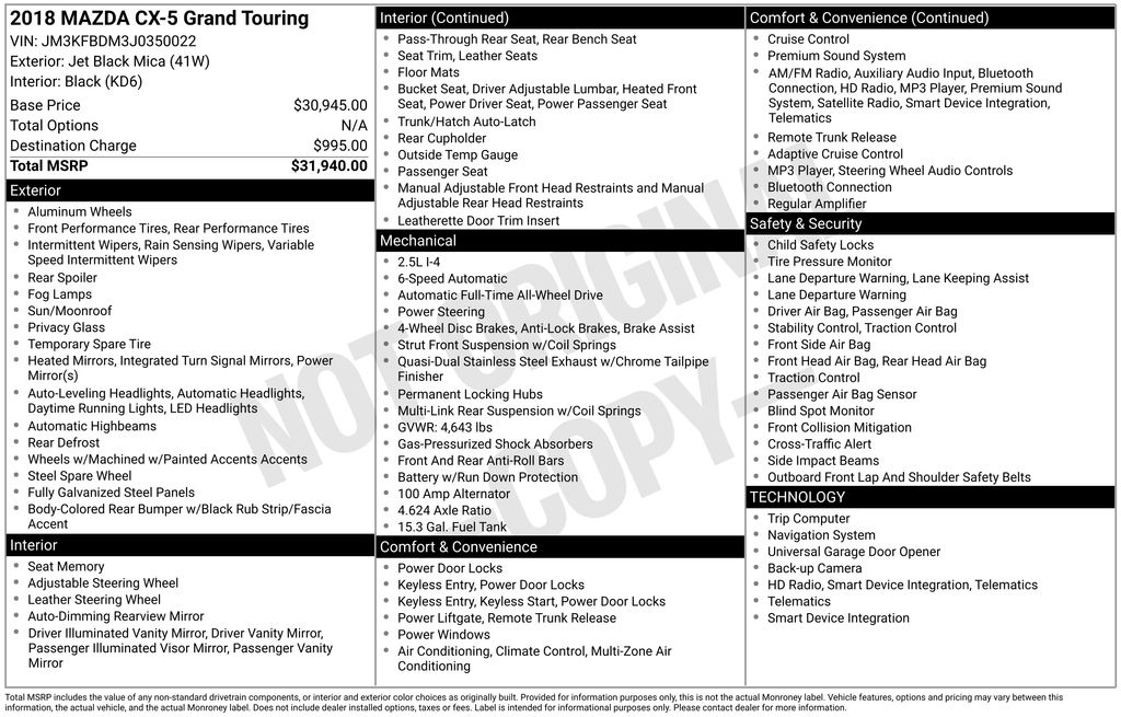 Experience the difference of owning this 2018 Mazda CX-5 Grand Touring. Schedule your test drive today and discover how this remarkable SUV can enhance your driving experience. We look forward to welcoming you to Pacifico Mazda and helping you find the perfect vehicle to fit your needs.