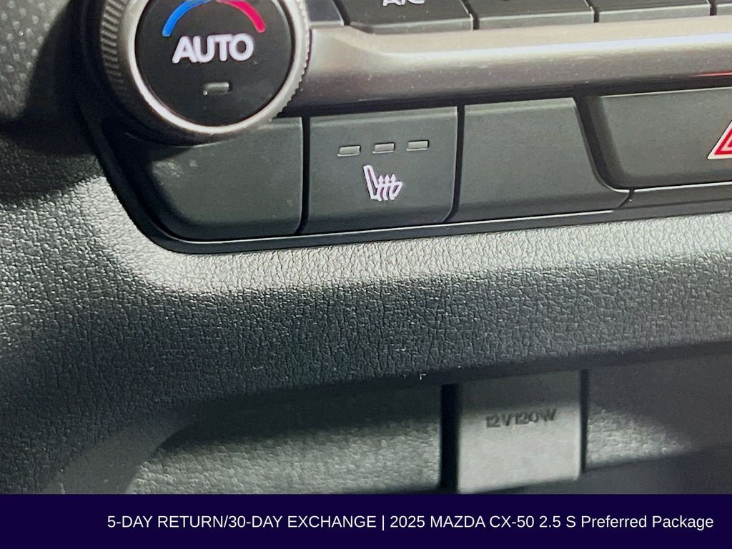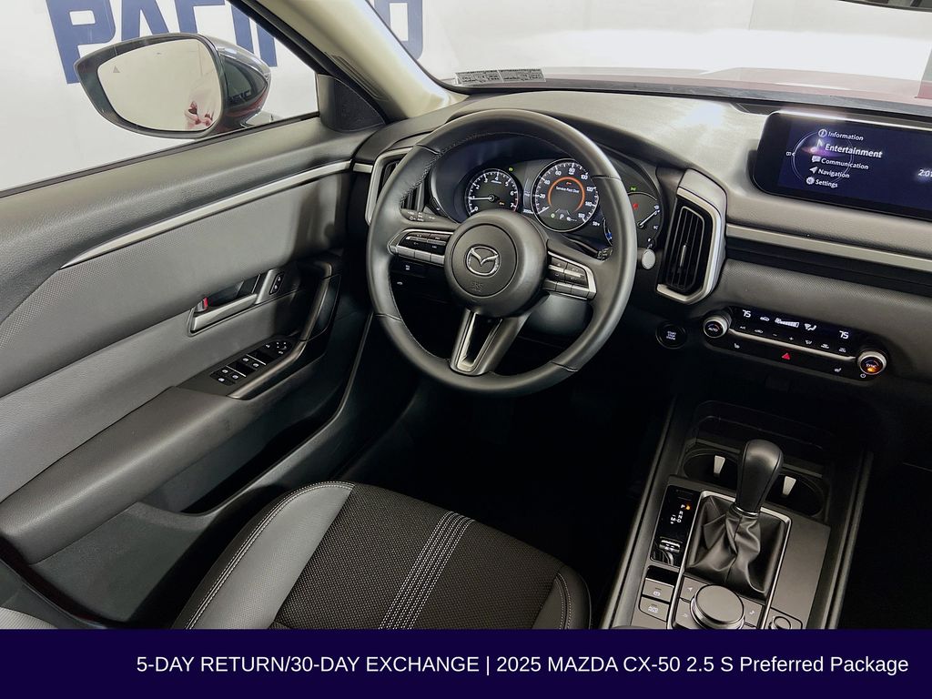 Inside, the CX-50 2.5 S Preferred Package is equipped with an impressive array of features that cater to your every need. Enjoy the convenience of a Power Liftgate, Heated Front Bucket Seats, and a Leather-Wrapped Steering Wheel. Stay connected with the AM/FM/HD 8-Speaker Audio Sound System, Apple CarPlay, and Android Auto integration.