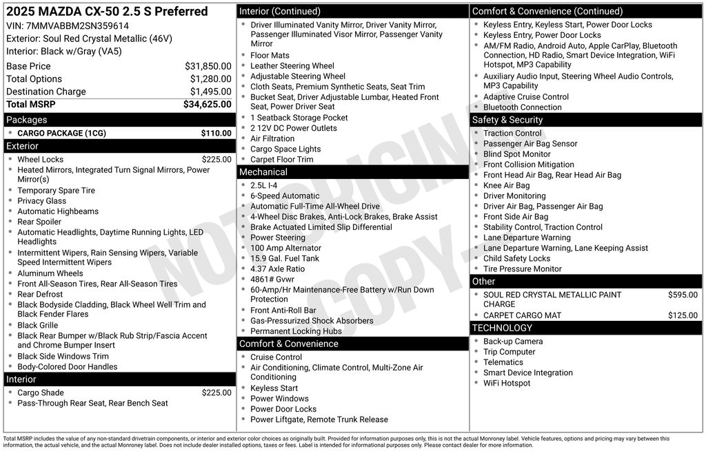 Whether you're embarking on a weekend getaway or navigating the daily commute, this 2025 Mazda CX-50 is the perfect companion. Its versatile design, advanced technology, and impressive performance make it a standout in its class.