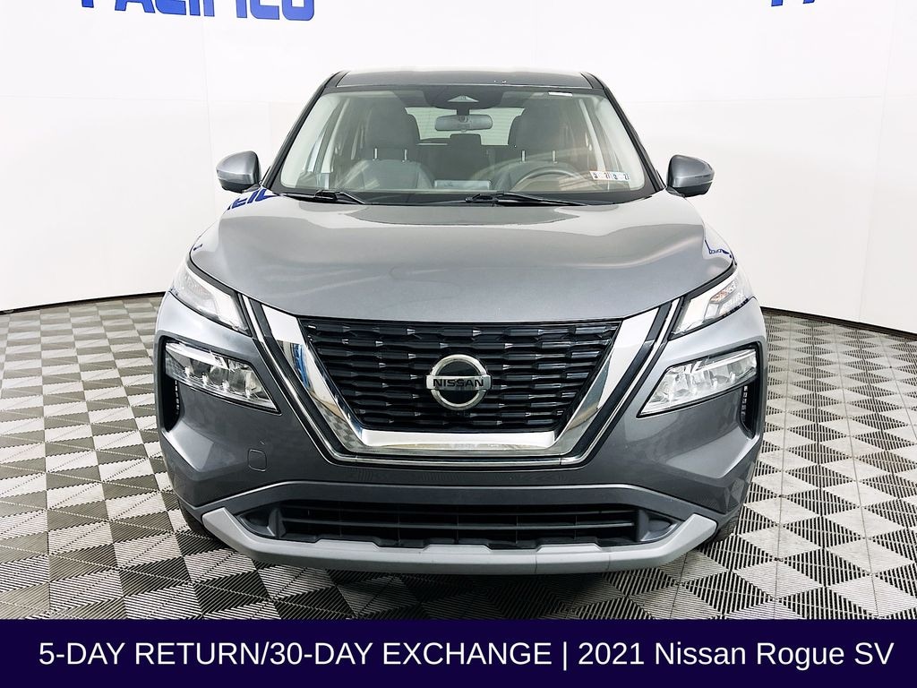 This pre-owned 2021 Nissan Rogue SV AWD delivers modern styling, advanced safety technology, and excellent fuel efficiency in a bold Gun Metallic finish with premium comfort features throughout.